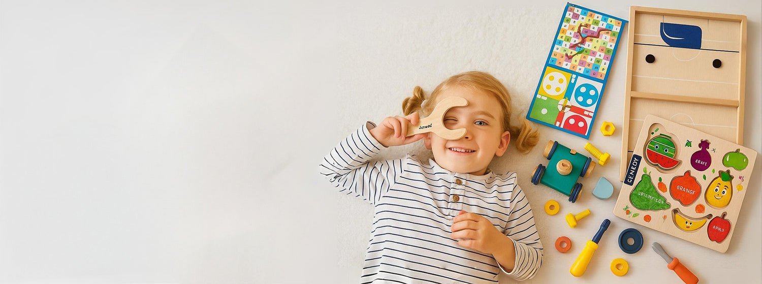 Introduce kids to fruits and vehicles with these colorful wooden puzzles. Safe, durable, and engaging toys that imp...